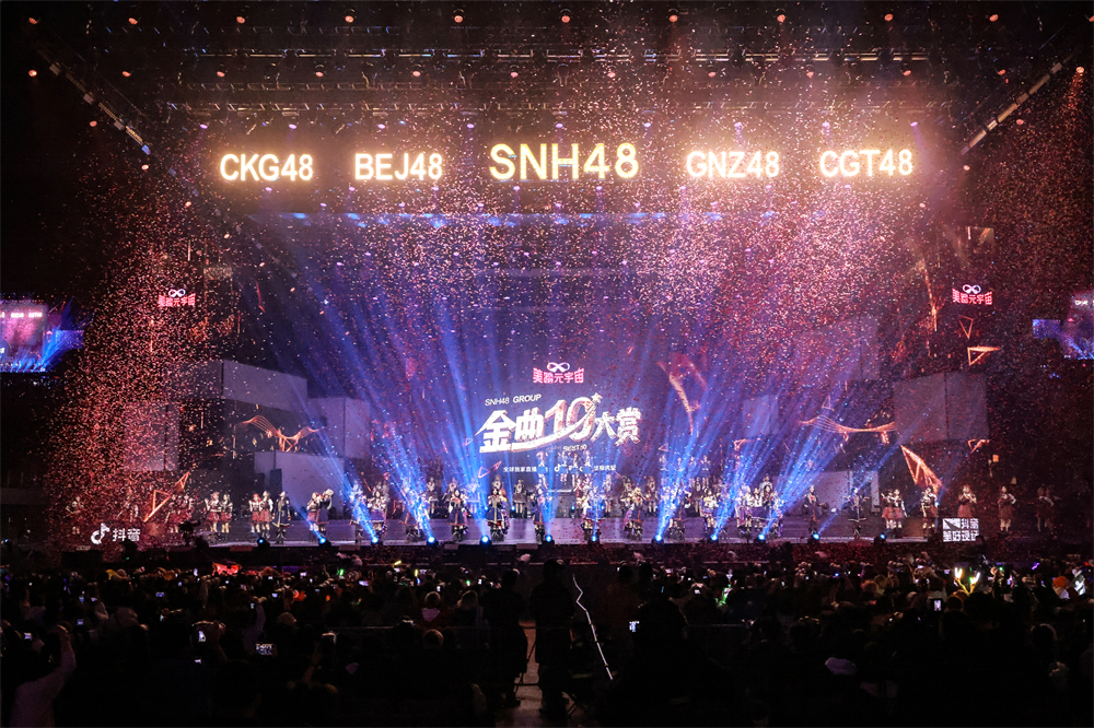 2024年1月13日晚,由面向WEB3.0和XR互联网时代的沉浸式互动社交元宇宙——美踏元宇宙(www.meta48.com)主办,抖音平台独家全球直播的SNH48 GROUP第十届年度金曲大赏在成都凤凰山体育公园综合体育馆落下帷幕。来自SNH48(上海)、GNZ48(广州)、BEJ48(北京)、CKG48(重庆)、CGT48(成都)五地姐妹团的成员共同献上了50首精彩金曲以及跨年单曲《钟声过后是新年》的首演,为观众朋友们呈现了一场感动与热情齐聚的舞台盛宴。当晚,热歌榜、曜阳组、皓月组、星芒组歌单也一一揭晓,由SNH48胡晓慧和SNH48刘姝贤携手带来的经典金曲《给未来的我们》,收获了本届金曲大赏年度金曲荣誉。